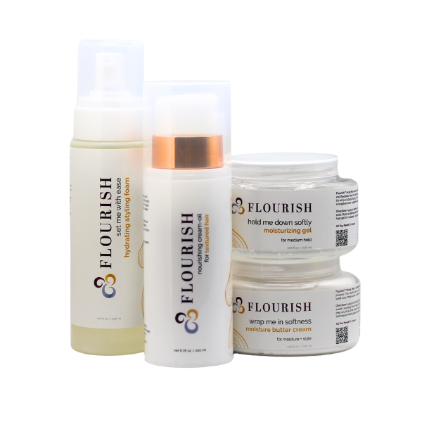 This Is the ultimate Flourish Bundle! This Flourish Set is designed with Moisture in mind because through the years of doing natural hair, moisture is always the culprit!